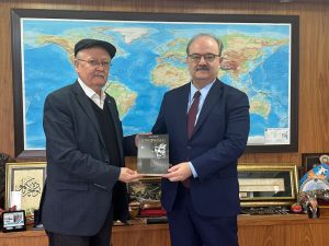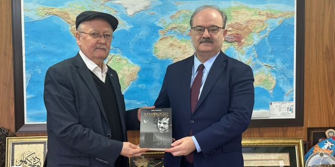 Görüşme sonunda Zafer Karatay Dr. Serdar Çam’a “Kırımoğlu, Bir Halkın Mücadelesi” eserini takdim etti.